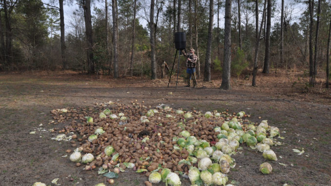 A great pile of vegetables will bring wild hogs into gun range