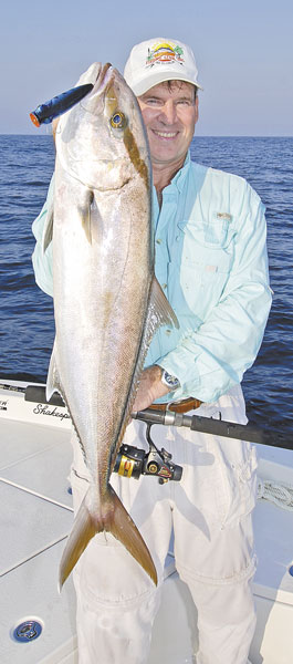 “We usually hook them when we’re trolling for king mackerel, and that’s always bad,” Barbour said. “With 20-pound trolling gear, all you’re going to reel in is a frayed line if he gets down to the bottom. If you want to specifically target amberjack, one of the most fun ways of doing it is with a topwater plug. Tsunami makes some inexpensive poppers that really do the trick.”