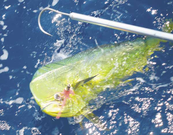 “I’m a big believer in a natural presentation of the bait and lure,” he said. “It needs to be flashing to attract attention, but I feel it’s important that the bait be running straight and not flipping and wobbling around. The bait should look like a natural fish presentation. However, there are times when the ugliest rig behind the boat will hook up with a big dolphin.”