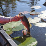 “When you get a bite, set the hook hard, then reel, reel, reel. This is why the heavy rod, heavy line and fast reel are necessary. Reel as fast as you can. Don’t give him a chance to wrap himself in the weeds,” he said.