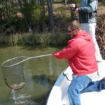 In the cold water, the fish tired pretty quickly and allowed themselves to be led to the boat. With quick dips of the landing net, Jernigan corralled them and lifted them onto the boat.