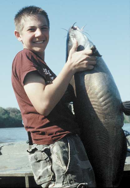 Hill, an experienced catfisherman despite his age, kept steady pressure on a sizable cat since no hook set is necessary with circle hooks. Eventually he maneuvered a blue catfish weighing more than 20 pounds into the net.