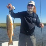 “The falling tides pull baitfish out of the flooded marsh grass,” he said. “Reds go into that grass during high tides, so when it falls out, good places to cast lures or baits are just off the marsh edges.”
