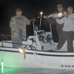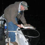 Couch recommends fishermen arriving for after-dark activity come equipped with at least 450 feet of anchor line to make sure they have enough rope to get a good anchor. Once anchored, Couch fires up two gas-powered generators and runs four sodium-vapor lights to attract baitfish. The generators’ noise can be loud, but Couch believes the noise and vibration mimic the churning water from the intakes. In fact, once he’s set up just before dark, it’s not unusual for his party to be well on their way to a 5-fish limit before the pump-back starts.