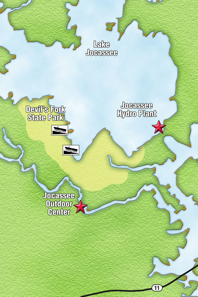 “The best night-fishing for trout on Jocassee occurs during April, May and June,” said Couch (864-982-1016). “Two factors occur at the same time to make the fishing so good. One is that baitfish are spawning on the rocks at Keowee during the late spring. The second is that pump-back activity, usually occurring at night, sucks water and baitfish from Keowee into Jocassee at the intakes. The moving water and injured baitfish is like ringing the dinner bell for the trout.”