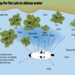 Kevin Davis, who guides out of Blacks Landing, also follows fat cats into skinny water. With so much shallow water available in both lakes, narrowing targets down is essential.