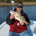 “The tide is pretty low, and we may bump the bottom getting across this bar and into this creek, but it will only be a tap or two,” Allen Jernigan said as he left the channel of the New River and headed into a small creek. “Even if I have to get out and wade us across it, this is a place I planned on fishing today. I was in here a few days ago and it was loaded with drum. Let’s hope they haven’t been harassed and moved.”