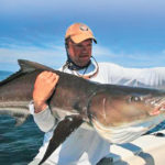 Capt. John Irwin displays a healthy 40-pound cobia that was hooked and landed on a fly.