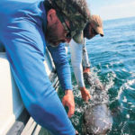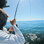 “Some days, we won’t get shots at any, but other days, we may see 10 or more,” Irwin explains to his friends, who have never landed a cobia.