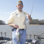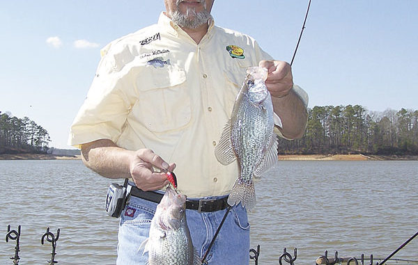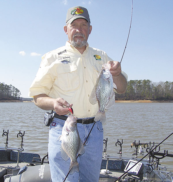 For fishermen who are interested in filling their freezers but don’t care to duel one-on-one with Hickory crappie, there is a machine-gun approach. Crappie pro Stokes McClellan of Huntersville counts himself among the other group that is more comfortable using an armload of rods when plying Hickory.