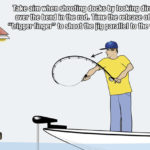 To shoot, you grip the tiny jig in one hand and bend the rod over into a bow. You open the bail on your spinning reel, holding the light line tight to the rod with your trigger finger. When you release the jig, the rod snaps forward, shooting the jig away from the rod tip. With critical timing, the trigger finger releases the line, allowing the jig to fly off on a flat trajectory.