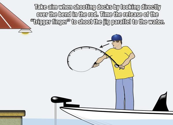 “The key is timing the release of the line and the jig,” he said. “Using 4-pound test allows me to get more distance, because the line comes off the reel easier. I’ve also put a lot of time in on the water shooting docks.”