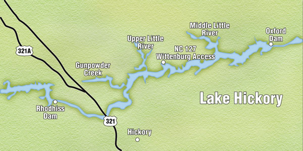 If they don’t happen to cross paths on the lake, Pope and McClellan may see each other at the ramp. Both point to the public Wittenburg ramp on the Alexander County side of the lake just west of the NC 127 bridge as the most convenient for reaching their favorite Lake Hickory hot spots.