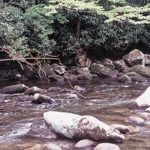 The Whitewater River, reached via a short trail which begins at Duke Power’s Bad Creek Project and connects with the Foothills Trail, might be a good starting point. The stream is crossed by a foot bridge that provides an access point from which you can work upstream or down. Alternatively — and this applies to the Thompson River, Howard Creek, and Laurel Fork Creek as well — you can travel by boat across Lake Jocassee to the mouth of these streams. One major problem with that approach, although the nimble-footed can overcome it, is that most empty into the lake in precipitous fashion. It is recommended only for the young and fit.