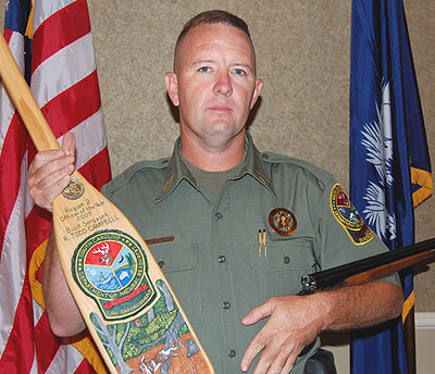 Sgt. Richard “Todd” Campbell was awarded the title of statewide S.C. Department of Natural Resources (DNR) wildlife officer of the year for 2007 during ceremonies held Friday, Sept. 28 in Columbia. Five other officers were also honored for their dedication in protecting the state’s natural resources through enforcement, education, special investigations, intelligence and records and staff operations.