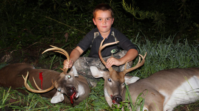 Jackson Lowder of Lynchburg was hunting by himself for only the second time on the afternoon of Sept. 11, but the 8-pointer in the crosshairs of his Simmons scope wasn’t alone. So after dropping the buck in its tracks, the 9-year-old sportsman chambered another bullet right away and downed the second 8-pointer.