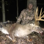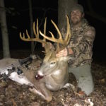 “Two young bucks started running does all through the hardwoods,” he said. “They were hitting horns, hitting trees, and just making a ruckus all afternoon. I think that is what got him stirred up, because he showed up downwind of these deer shortly after 6:30. I looked up and saw his big beams coming through the woods.”