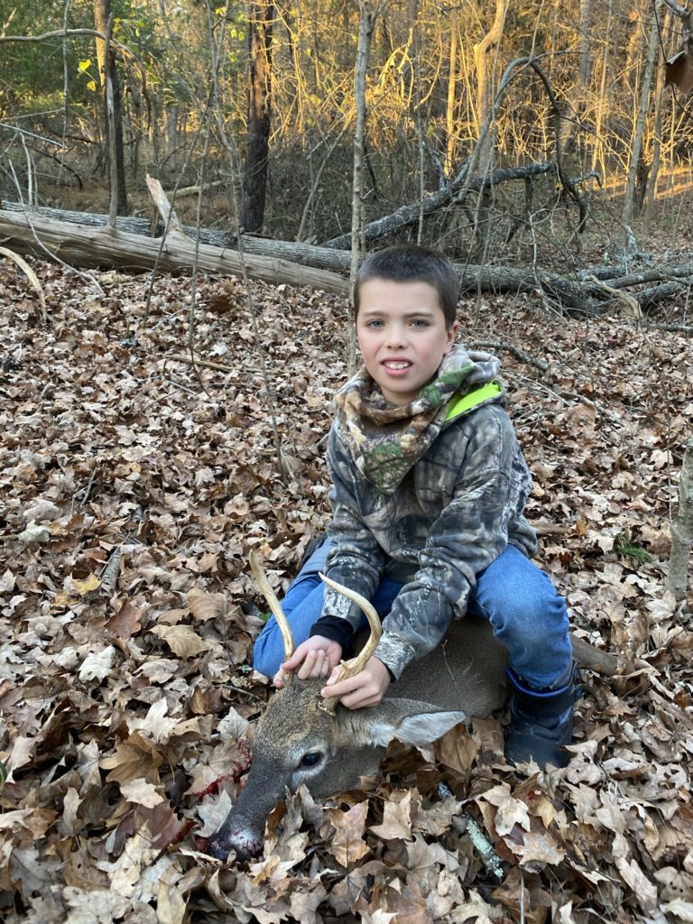 My son Elijah Hodges (9 years old) took this 4 point in Orange County, N.C. with a perfect shot from 20 yards with a TenPoint crossbow. His very first hunt and very first shot. On 11/23/20.