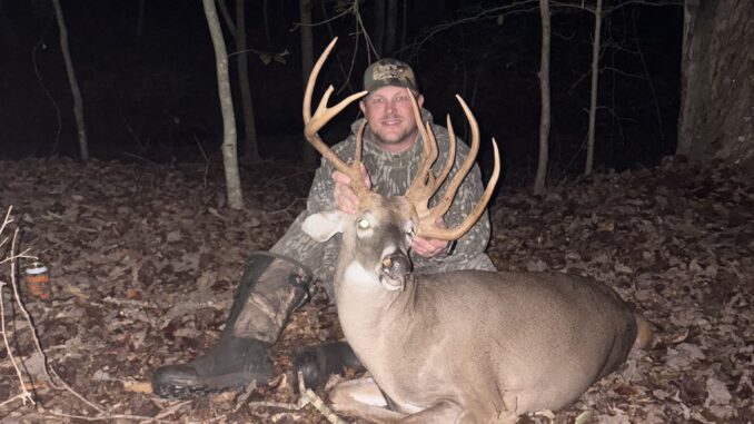 I’ve been an avid hunter since I can remember. I’ve killed many nice deer, but this one takes the check mark for craziest. My wife first saw him late August with velvet from our back porch in the field. We hunted together several times but he was smart and only came out in the dark. The weather finally changed and cooled down so I knew the deer were moving. Friday night I got in the stand and bucknasty messed up. He was after a little buck and I shot him with my crossbow between 20-30 yards. He didn’t go far. It was a fun hunt for a crazy deer we never had on camera before.