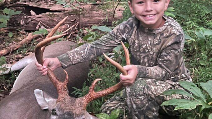 I shot my first deer which was a 7 point at age 7. I took my deer with a 300 blackout and he was 125yards. My deer weighed 185lbs