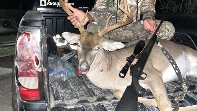 Starts about a month ago got a real late start far as the early season. Such as setting up cameras and getting ready for the season. The buck I called crab claw started showing up about a month ago. In between times 2-4am but was on camera almost every night. I went and hung my climber in the area I thought he was in real thick pine/oak bottom. Kept getting pictures but none during shooting light until 2 weeks ago. He came out at 7:30pm ate for a while and headed towards the neighbor property. I knew that’s where he was spending most of his time so i backed out of my spot to try and let him get comfortable. Last Sunday he daylight again late in the evening ate for a while and headed back to the neighbor property. Fast forward to yesterday I was hunting another stand where I’ve been having two shooter 8 points showing up pretty good during day light. About 200 yards away I was hunting in my 2 man stand hoping one of the shooters to show up well at 7:28pm crab claw stepped out into the thick pine/oak bottom. My stomach twisted. I sat a lil longer and got out of the stand walked quietly to my truck and went home to game plan. Looked at all the pictures i had of crab claw checked which way the wind was blowing every time he showed up daylight and early mornings. Every picture I’ve had of him he was moving with the wind blowing north. Well today I texted a couple of buddy’s asking what they thought about the situation. Everybody said if the wind is blowing north go hunt him. That’s exactly what i did I got in the woods and in the climber at around 6:05 pm within 15 minutes a doe was already on corn. I was getting excited after I seen her come through that early silently waiting around 7:15pm I heard something coming through the woods behind walking into the wind. I slowly turned around and seen a tall rack 4 point that crab claw was running with in the pictures. I said to myself he’s back there somewhere I watched the smaller buck work around and eat acorns suddenly I caught movement behind him. I looked through the scope and seen it was crab claw I gave him time and let him work around towards me and at about 25 yards I pulled the trigger dropped em.