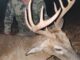 Got in the stand before daylight and around 0830 heard a buck grunt off to my right. Called and didn’t see anything, about 45 minutes later a doe comes out to my right about 200 yds away and runs off. I grab the bleat and call and immediately he steps out looking, I put the cross hairs on his neck and he steps behind a tree, I reposition on his front shoulder and squeeze. Gun recoils and I look through the scope and he is standing there. I put another round in the chamber and settle in a squeeze a second shot, this time he jumps and takes off. I wait about 45 minutes and get down to look for blood a I can’t find any, I pick up a track and start following some disturbed ground a broken branches and after about 40yds there he lays.