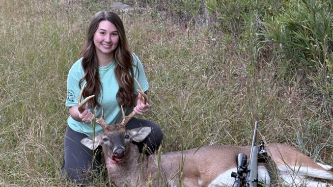 I’ve been running dogs with my dad since I was in a car seat, it’s truly one of my passions. But my favorite place to talk to God is in a stand. That afternoon something was telling me to go sit out and after about 2 hours all I had seen was a doe and her fawn. As I was about to leave he came out, I was shaking so bad I didn’t know what to do (buck fever is REAL). I gathered myself together, made sure to line up the perfect shot and get my breathing under control. After that it was history, I couldn’t have been more excited. So naturally the first thing I did was call my dad.