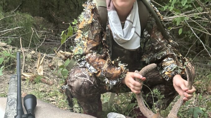 This was my daughter’s first buck. We also climbed a stand for her first time. Weather was starting to get windy and a little rain. She made a perfect 75 yd shot with her 243 and dropped him. As a father, it’s the most fun and rewarding hunting experience I’ve ever had. She’s worked very hard to get proficient with her rifle and say many hours with no deer. I’m proud of her.