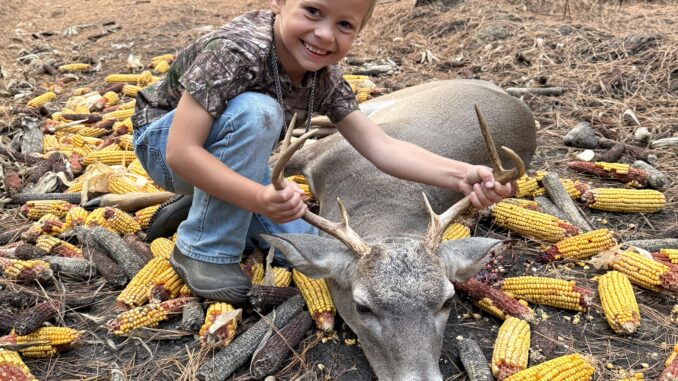 Colby dropped his first deer, of which was a 7pt in the corn pile at just 6years old. He shot him in the neck with a .223 at 35 yards. His grandfather passed away last year from pancreatic cancer, & he would’ve been loving every minute of this moment but while we were in the stand we had a cardinal show up letting us know he was watching over us!