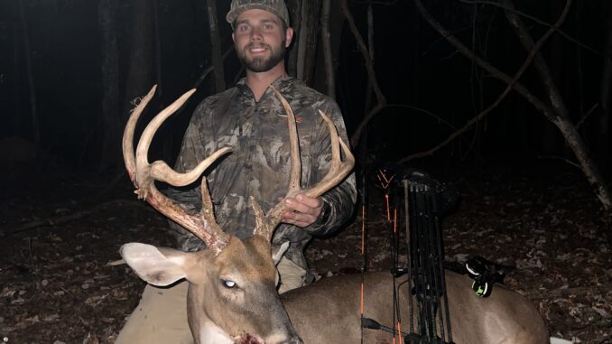 I shot this buck with my Matthews v3x at 40 yards with six other bucks, standing close by to focused on each other and not their surroundings. I saw my opportunity and I quickly pull the arrow back, locked my pin on him and let an arrow fly
