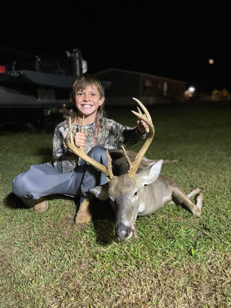 8-year-old Mason Wilkerson from Tarboro, NC killed this big Johnston County 9-point buck while blackpowder hunting with his dad on family land in Johnston County on Oct. 1, 2023. Had multiple trail pictures of him during the day and night. He missed a smaller buck on youth day and was determined he would not miss again. The buck came out at 100 yards and Mason dropped him in his tracks. We were able to get it on video, making it even more memorable.