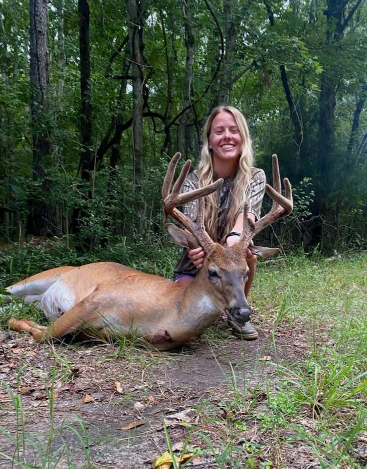 Rosalyn Ballam of Awendaw, SC has made a tradition of killing velvet bucks during South Carolina’s opening week. She killed an 8-point buck in full velvet on Aug. 15, 2023, and it’s not the first time she’s done that on opening day.