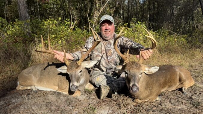Been hunting the 8 point with 20” inside spread buck for a little while. He finally came into view but with no good shot. He walked outta view and came back a few minutes later at 150yds but still no good shot. Finally…. The 30-06 dropped him in his tracks! While waiting on my brother-in-law to hopefully have one show up, the 2nd 8 point came out an hour later in a different shooting lane at 100yds. Brother-in-law never saw one! 🤣