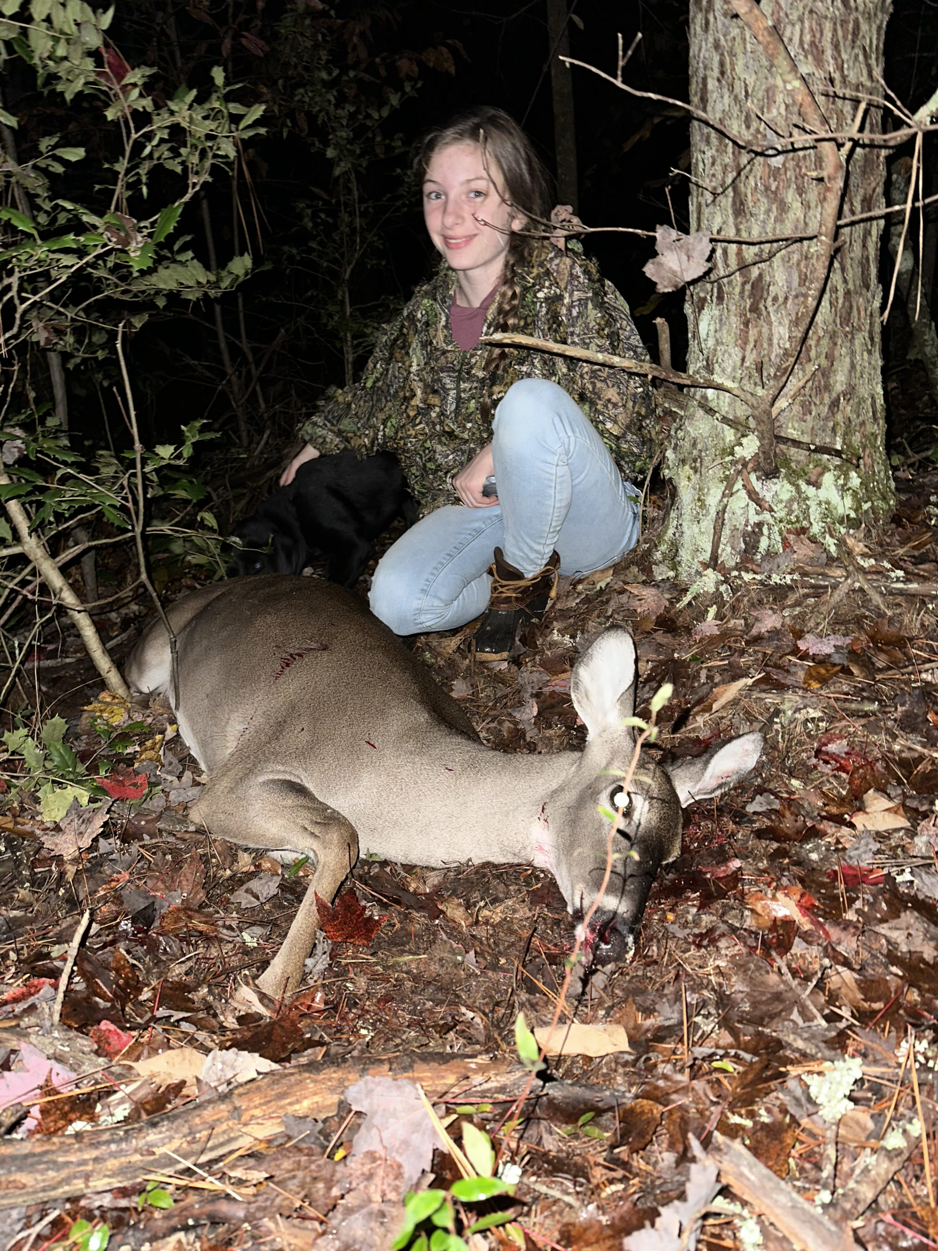 On Nov 2nd, 12 year old Claire Dalton went on her first hunt with her dad, Michael, on my farm in Blacksburg, SC. She was sitting in the blind as a 120 lb doe came into the clearing. Using the patience of a seasoned hunter, Claire waited for the right moment and pulled the trigger, striking the deer behind the right shoulder. Not only was this her first hunt, first shot and first kill, it was made more special by using her recently deceased grandfather’s 243 rifle. Claire had target practice a month before with the same rifle at the Board of Public Works Firing Range in Gaffney, SC, which helped to prepare her for this hunt.