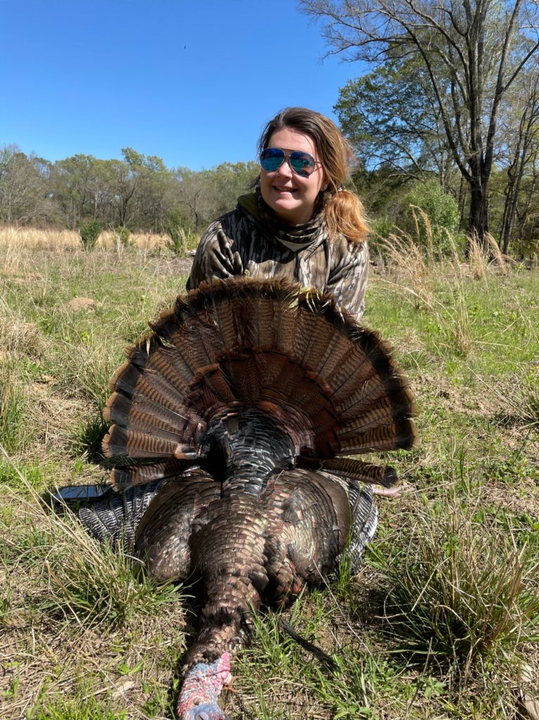 My husband and I (Kaitlyn Neely) had been on four consecutive hunts over the weekend and could never get a gobbler close enough to us to shoot. On Sunday March 27, 2022 my husband called in two hens and about 10 minutes later here he came running into our decoys and I shot him at about 25 yards. He weighed 19.6-pounds, 10.5-inch beard with 1-inch spurs.