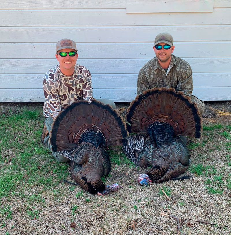 Chris Joyner called in Ridge McKeithans first turkey in 2003. Ridge then moved out of town causing them to not hunting together for 20 years but on March 24, 2023, they reunited for another hunt in Lake City, SC where Ridge returned the favor calling in this rare split spur turkey for Chris to harvest, and they doubled up!