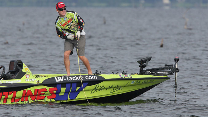 Toledo Bend was a bit tougher for Bassmaster Elite Series pro Brent Champman today (June 9), giving up only 16 pounds, 5 ounces. But that was enough for the Kansas pro to maintain the lead going into the final day.