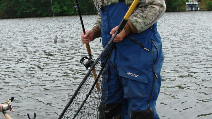 However, the day began slowly. Hammill, who runs Hammill’s Outdoor Adventures (704-239-7921), said a friend had fished all night and not caught anything, that no water ran at all through Tuckertown Dam upstream, so there had not been any current to get the fish in a feeding mode.