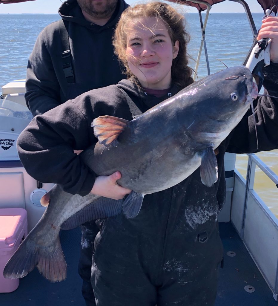 Brooklyn Carter caught this 25-pound blue catfish while fishing the 2023 Santee Big Cat Brawl.