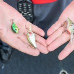 “My crankbaits run from 4 to 12 feet deep,” said Moody, “maybe 16 if it’s hot and extra bright. That’s running 2-inch, 3-inch, 3½- and 4-inch baits on the deeper end. I’m usually doing this with a 10-rod spread: six straight crankbaits, two three-way rigs with a jig running in conjunction, and two 1/16-ounce Roadrunners.”