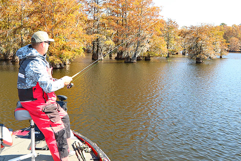 Many of the deep brush piles he fishes are in open water, far from shore. Others though, are just outside of, and even within, pockets of cypress trees that are a stone’s throw away from dry land.