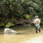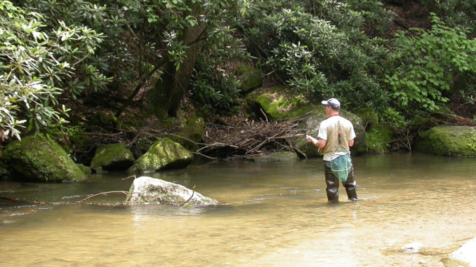 Large flies such as Nos. 12 and 10 chartreuse, olive or black Woolly Boogers are especially effective for prespawn browns. Kevin Howell of Davidson River Outfitters in Brevard said browns will hit Woolly Boogers because they think they’re salamanders. Other deadly flies are a No. 10 Bitch Creek Nymph and a No. 12 Girdle Bug. Spinning lures such as a 1/4-ounce Mepps Aglia or a Panther Martin with a black body and yellow dots also work well on prespawn trout.