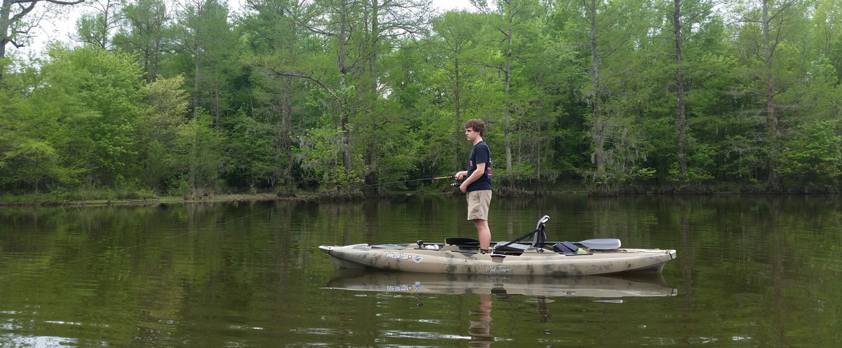 In a search of a fishing hole near the college my son attends, we found a pond owned by the city. It was off the main highway and only accessible by dirt path. After a few phone calls, we also found out that not only was it legal to fish there without a special permit, but we were also allowed to use paddle craft. Because of the remote location, we enjoyed a beautiful day together on the water without any others around in the water or on the banks.