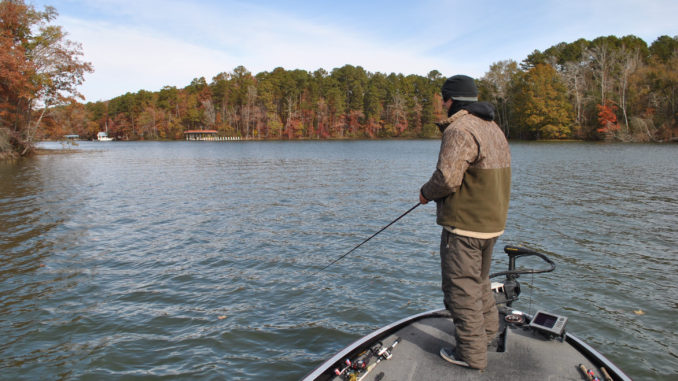 “It’s important to do some scouting for the fall during the summer,” he said. “You’ll find a lot of bait on main-lake points and around flats that will hold bass. What you want to do in the fall is fish the creeks that are related to those areas that held bait and bass during the summer.