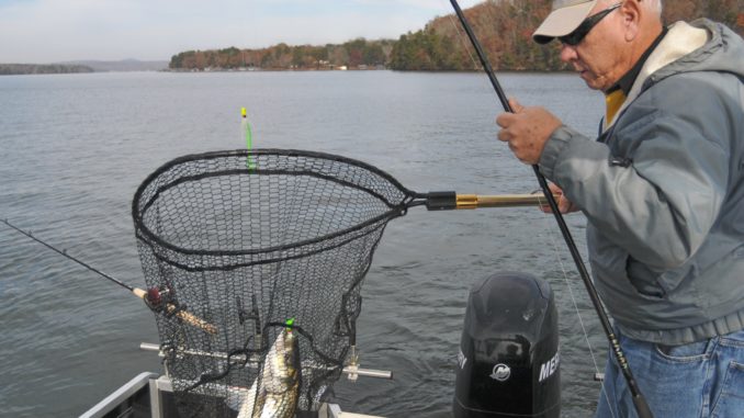 Guide Maynard Edwards believes that High Rock’s striped bass don’t reach trophy sizes because of a liberal creel limit and heavy fishing pressure.