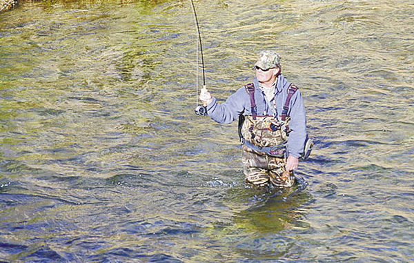 Terrestrials are effective flies for summer fishing. Recommended are No. 14 for inch worms, No. 16 for black ants and beetles, and No. 12 for crickets and hoppers. Midge patterns also are good bets this time of year. These gnat-like insects hatch year-round. Small is best: Nos. 24 through 26. If you have trouble seeing a fly that small, use a larger dry-fly dropper as a strike indicator. Tie the smaller fly to the larger fly’s shank, using about one-foot of tippet. This technique also works well for nymph fishing. The larger dry fly will keep small Hare’s Ear, Tellico, or Pheasant Tail nymphs suspended in the water.