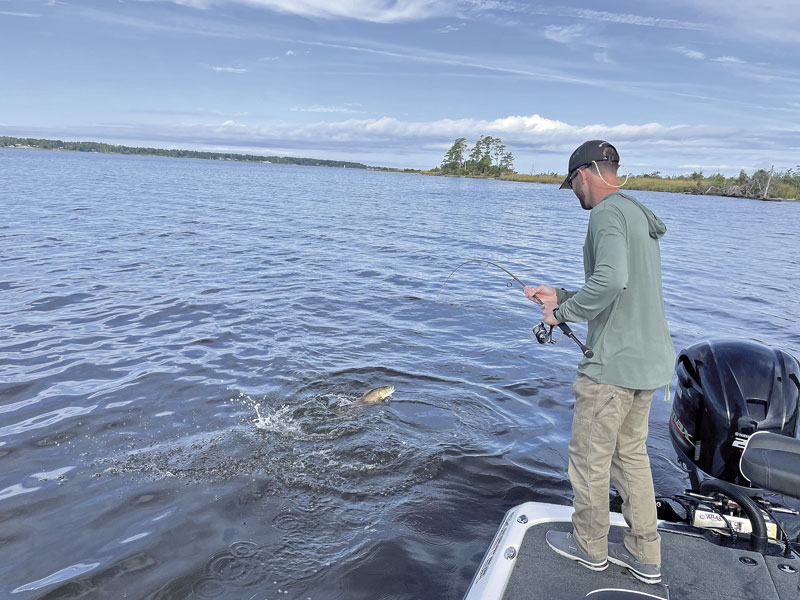 “Up around New Bern, you concentrate on stumps and structure along the shoreline. You can pick up some quality fish, up to 25 inches, around those stumps.”