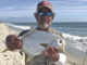 Brothers (from left to right), Ben Dillon of Greensboro, Curtis Dillon of Winston Salem and Tommy Dillon of Maryland and Dad, Stacy Dillon (center) of Winston Salem caught a total of 18 Pompano, most weighing over a pound on Friday, October 7th in Oak Island. Pompano were caught in the surf using fresh bait shrimp!