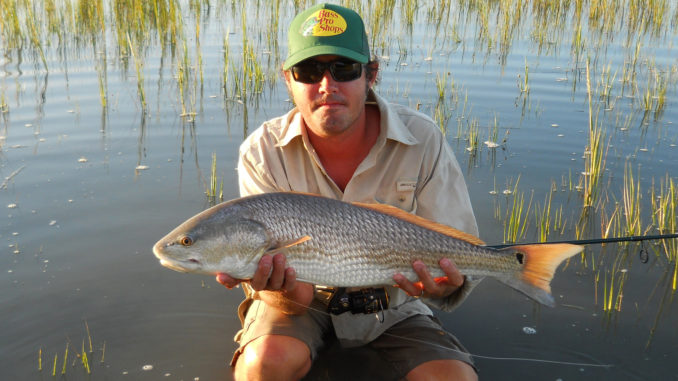 The presence of redfish is easy to spot by seasoned anglers with an eye on the grass at high tide. Because fish are often longer than the water is deep, and because they are focusing on crabs that are crawling along the bottom, their tails wave above the water’s surface as if to say “cast here.” Anglers who are on target will often be rewarded with an aggressive bite.
