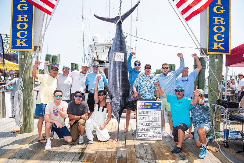 SUSHI, a 57-foot Island Boat Works vessel out of Nags Head, won the Heaviest Blue Marlin category in the 2023 Big Rock Blue Marlin Tournament with a 484.5-pound marlin, and pocketed $2,769,400 for their efforts. They caught the big fish on Friday, June 16 to claim their place atop the leaderboard. Justin Riley was the angler.